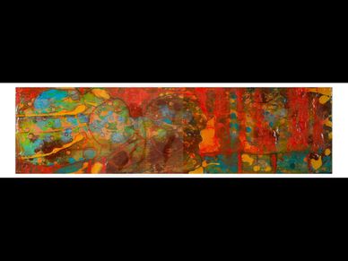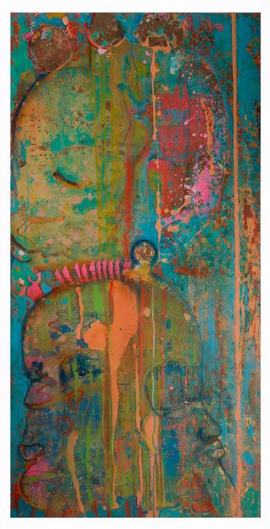 This painting reflects four years of striving for balance. Throughout the process, it underwent numerous transformations, accumulating countless layers that symbolize that journey. While I'm uncertain if it's truly complete, I find enjoyment in the tension inherent in my quest for balance. This piece serves as a reminder that the creative process is often a challenging endeavor. Ultimately, it highlights the rigorous nature of artistic creation.